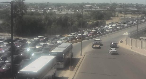 El Puente Internacional Puerta de las Américas muestra lleno total en su fila sentri vehicular, mientras que, la fila de peatones se encuentra casi vacía.