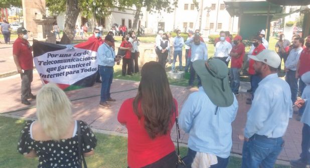 Ante ello, la Sección 16 del Sindicato de Telefonistas de la República Mexicana, realizó un mitin la mañana de este jueves frente a la Presidencia Municipal.