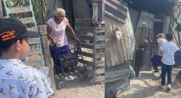 La publicación fue acompañada con tres fotografías, en donde Gabrielito ilustra la situación que doña Manuela vive día con día, en una humilde casa elaborada con láminas y cartón.