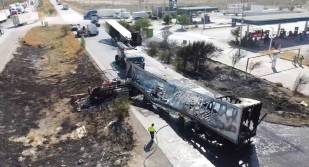 Un chofer de tráiler murió calcinado luego de que estrelló su unidad contra la caja de otro camión, cuyo operador estaba estacionado sobre el “acotamiento” del Libramiento Mex II, al poniente de Nuevo Laredo.