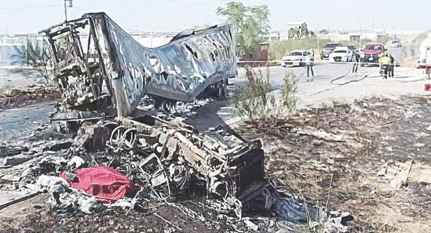 Ya fue identificado el hombre que murió calcinado al incendiarse el tráiler que conducía, luego de chocar contra un tractocamión estacionado a medio carril del Libramiento Méx II. Pedro Alberto R. H., de 23 años, de Allende, Nuevo León, es quien perdió la vida “carbonizado”, después de sucedido el percance a la altura del entronque con la Carretera Piedras Negras.