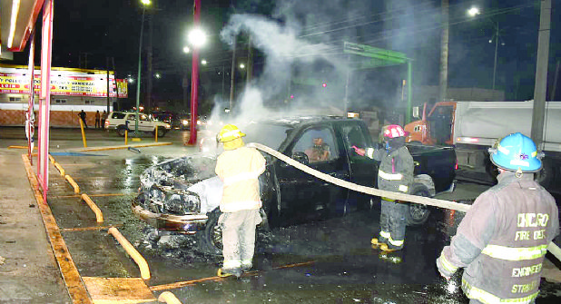 El incidente se reportó el sábado en la noche y de acuerdo a los informes preliminares, la conductora de la camioneta estaba dentro de la tienda de conveniencia cuando se estaba incendiando el vehículo.