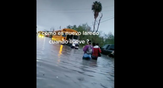 Empleados de fábrica de Nuevo Laredo se quedan varados por lluvia y lo toman con humor. En un video que circula en redes sociales se ve a un grupo de hombres y mujeres, bajando de un camión amarillo de transporte colectivo, que al parecer se averió.