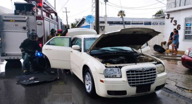 De acuerdo a los primeros informes, al parecer el origen del fuego se originó por un corto circuito en la pila del Chrysler 300.