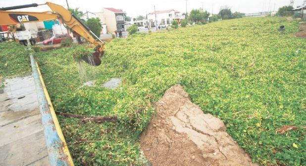 Gran parte del lirio acuático que cubría El Laguito fue arrastrado por las lluvias, provocando que el flujo del agua no pasara libremente por el arroyo El Coyote, y fue necesaria la intervención de maquinaria para retirarlo, evitando así un desbordamiento.