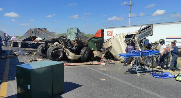 Nuevo Laredo, Tamaulipas || Luego de chocar por alcance contra otra pesada unidad, un chofer de tráiler quedó prensado luego de que la carga que transportaba, consistente en estructuras mecánicas muy pesadas, se le vino encima y aplastó la cabina, en hechos ocurridos sobre la Carretera Nacional, en la vía libre.