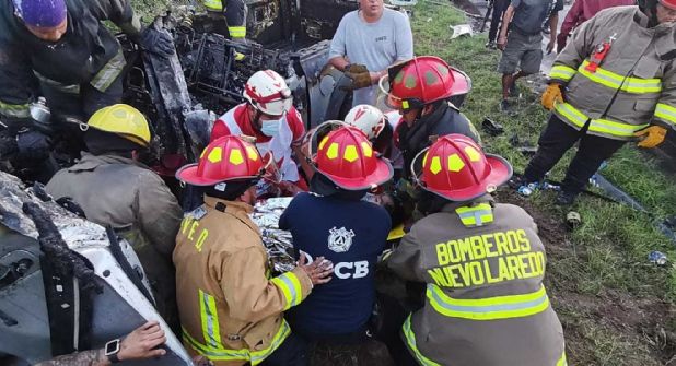 A las 7:20 p.m. un Ford Taurus 2014, conducido por Sergio, invadió el carril contrario e impactó contra una camioneta Ford Raptor modelo 2018, manejada por Marco Antonio, originario de Laredo, Texas.