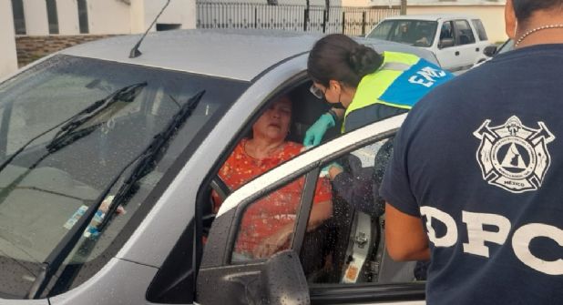 Dentro del Spark atendieron a la conductora de nombre María, quien sufrió un golpe en la frente y sangraba de la nariz.