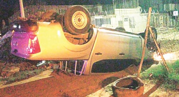 Personal de la Dirección de Tránsito y Vialidad fue alertado de los dos accidentes y se solicitaba su presencia en el lugar. Los oficiales que atendieron el llamado, observaron una camioneta Nissan Frontier y una Kia que volcaron en una calle en reparación.