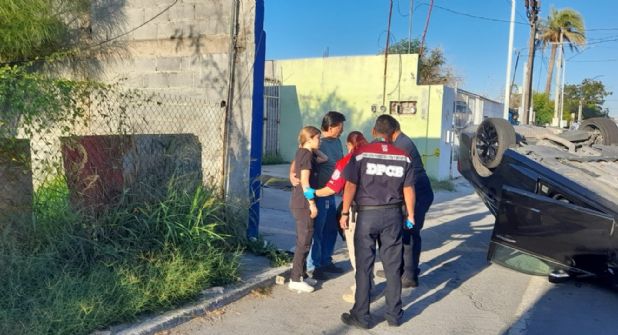 Una mujer resultó con lesiones al volcar su auto por la calle Bravo a un costado del Bulevar Colosio.