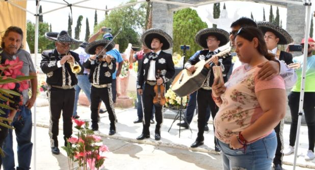 Griselda y miembros de su familia acudieron al Jardín de los Ángeles y ante la tumba de Heidi Mariana le cantaron las mañanitas acompañada de un mariachi local.