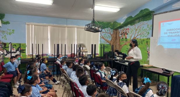El departamento “Educación y Cultura Vial” enseña a los menores a respetar los señalamientos de vialidad, así como a identificarlos mediante pláticas, diapositivas y dinámicas para los escolares.
