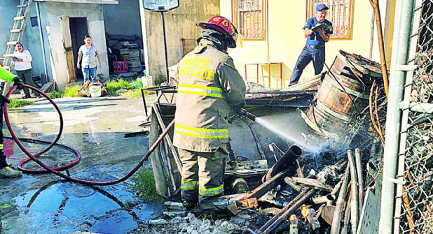 En lo que llegaban los bomberos, el personal de URSA y la Guardia Municipal usaron botes con agua para tratar de apagar el fuego; pero las llamas se siguieron extendiendo y afectaron parte de una polvera de una camioneta una Chevrolet Astro modelo 2004, que se encontraba dentro del predio.