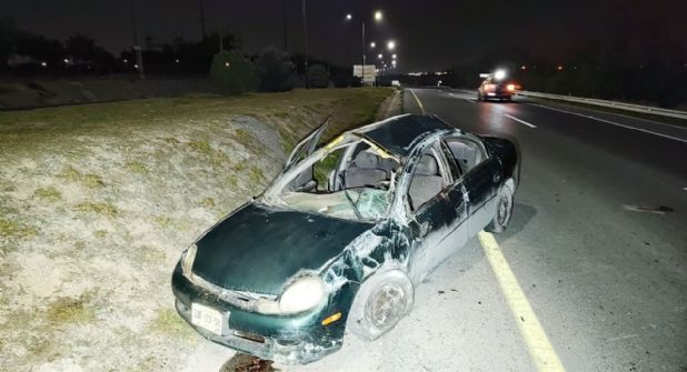 Se trata de un Dodge Neón modelo 2000 color verde que aparentemente se volcó, dando varias volteretas y quedar sentado en sus llantas.