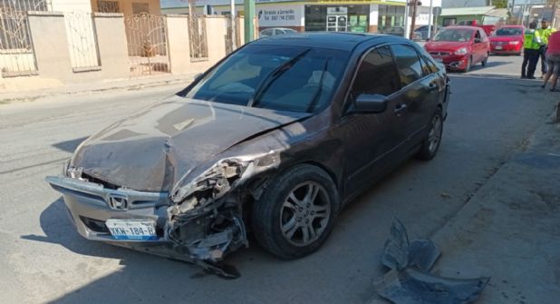 Otro choque fue el que se registró en el crucero de Jesús Carranza y Perú, caso en el cual, el conductor de un auto Honda Accord 2006, pasa el crucero cuando el semáforo le cambio a luz roja y es impactado por el chofer de una camioneta Hyundai 2010.