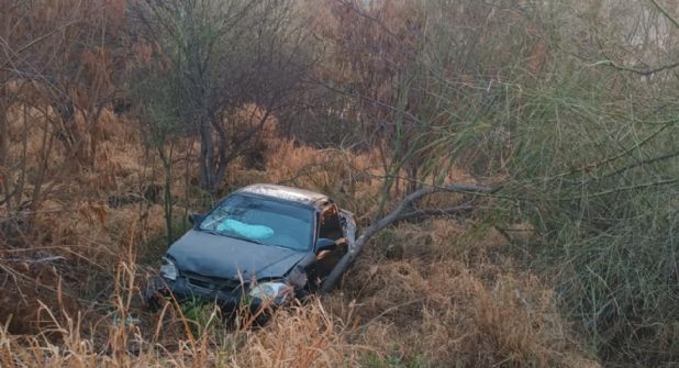 Informes recabados en el lugar señalan que el vehículo circulaba de sur a norte por el Bulevar Colosio y a la altura de la calle Venustiano Carranza, su conductor se descontroló debido al ciclista que se le atravesó y se cargó ala derecha para salir volando y caer entre los matorrales.