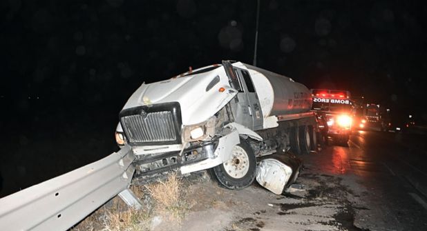 El conductor del camión-tanque también se desplazaba por anillo periférico de norte a sur por carril derecho, la cual se salió del camino y quedó chocada contra el barandal metálico de la vía asfáltica.