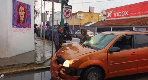 Por no respetar la luz roja que le marcaba el semáforo, un elemento de la Guardia Nacional habría provocado un accidente vial en las calles de Venustiano Carranza y Juárez.