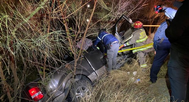 Después, el hombre se salió de la cinta asfáltica y fue a caer entre unos matorrales, quedando la unidad de costado y él atrapado al interior.