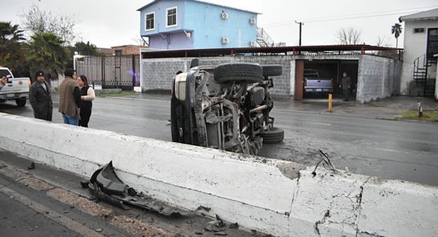 A pesar de las maniobras para poder retomar el control de su vehículo, el asfalto mojado no fue de gran ayuda, por lo que la camioneta se ladeo sobre su costado desplazándose sobre la avenida; lo único que pudo frenar su loca carrera fue la barrera de concreto que divide los cuatro carriles de la calle.