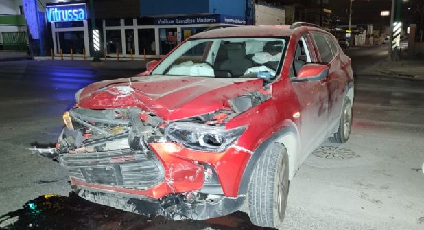 Otro aparatoso accidente del fin de semana fue el que se registró en el crucero de César López de Lara y éste fue protagonizado por el chofer de una camioneta Chevrolet Tracker 2022 que, por burlarse la luz roja del semáforo, choca contra un Nissan Altima 2010.