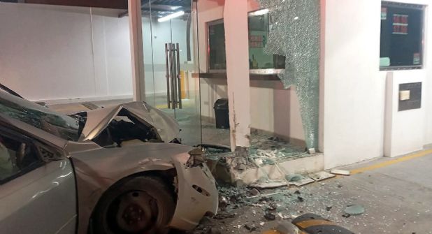 Tras no detenerse luego de que agentes de Tránsito le marcaron el alto al ignorar un semáforo en rojo, un joven imprimió mayor velocidad en su automóvil sólo para estrellarse contra una casa de cambio, en donde además de daños, provocó que su novia resultara lesionada.