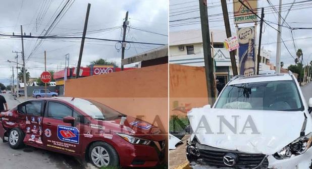 El percance se registró en el crucero de la avenida Reynosa y Anáhuac; de este fue responsable Jorge Carmelo, de 37 años, quien conducía un automóvil Nissan Versa modelo 2020.