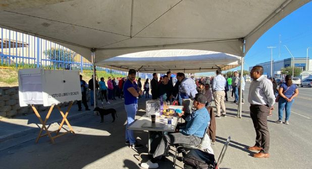 Al lugar donde votan empleados de Caterpillar para determinar si continúa la huelga, acudieron elementos de la Guardia Nacional y del ejército mexicano.