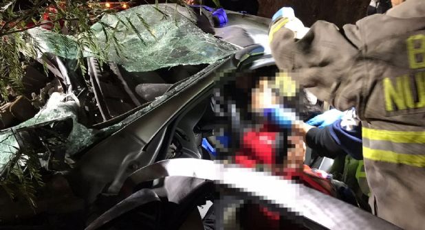 Debido a que el carro de la víctima, un Chevrolet Cobalt quedó muy dañado y las puertas prensadas, los bomberos usaron las quijadas de la vida para destrabarlas y poder extraer a la mujer que se encontraba en grave estado de salud.