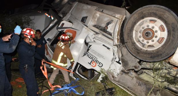 El conductor de la pesada unidad, de nombre Juan junto con su acompañante Michael N, fueron rescatados por elementos de Protección Civil y Bomberos quienes para liberarlos emplearon equipo hidráulico también conocido como "Quijadas de la Vida"