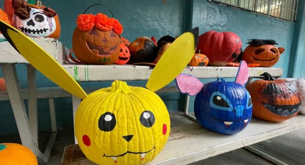 En dicha actividad participaron estudiantes de todos los grupos de primero, segundo y tercer grado elaborando originales calabazas de distintos tamaños y materiales, pues había naturales, de plástico y del papel, pintadas y caracterizadas de personajes de caricaturas, del mundo de la música, de películas y de videojuegos.