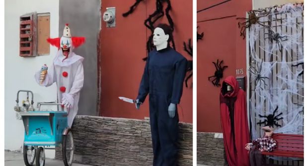 En esta casa colocaron figuras como Michael Myers, protagonista de la clásica película de terror, Halloween; también colocaron un payaso tenebroso que "vende helados"; en la fachada de la casa hay arañas, esqueletos, figuras aterradoras como la muerte y hasta el personaje de "La Masacre de Texas", con todo y su sierra eléctrica.