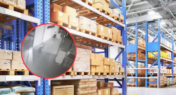 La filmación comienza cuando, un empleado ingresa a lo que se supone es el almacén y empieza a corroborar algo en la puerta de acceso.