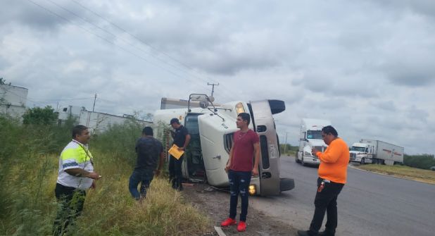 Al lugar del accidente acudieron elementos de Protección Civil y Bomberos auxiliaron al operador del tráiler, quien salió ileso a pesar de la magnitud del percance.