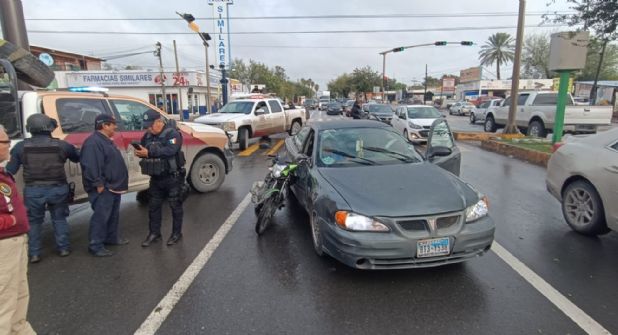 Lesionado quedó un motociclista que se estrelló contra el costado de un auto Pontiac cuyo conductor daba vuelta en U en el crucero de César López de Lara y Washington.