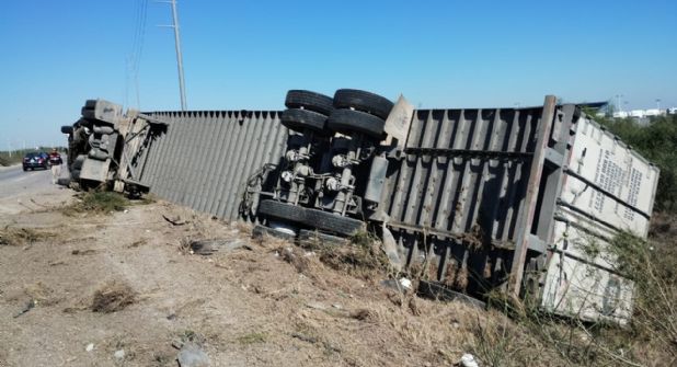 Un trailero sale vivo de milagro después de volcarse con todo y su camión en un hecho ocurrido esta mañana en el famoso y peligroso Libramiento Mex 2.