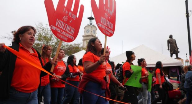 Mujeres se reunieron para marchar en conmemoración al Día Internacional para la Eliminación de la Violencia contra las Mujeres y Niñas, como parte de las actividades de la Cartelera Naranja que organiza el Gobierno Municipal por medio del Instituto Municipal de la Mujer (INMUJER).