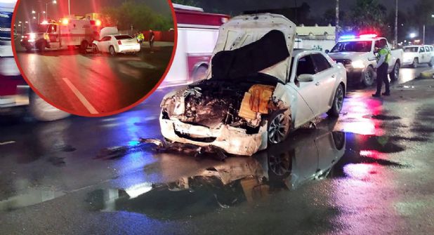 El impacto fue tan fuerte que la camioneta se salió de su carril y se estrelló contra una barrera de concreto en el camellón central, quedando en sentido contrario.