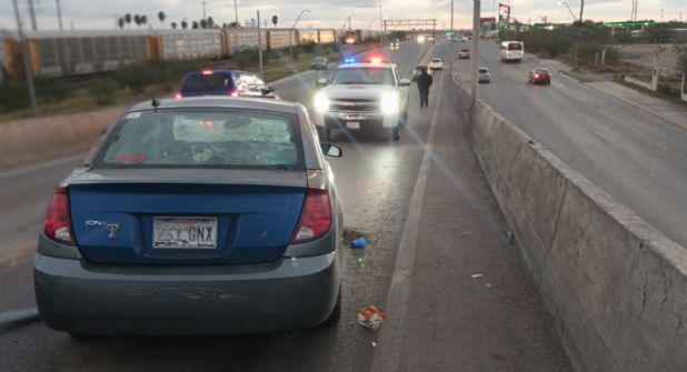 Los agentes que acudieron al lugar encontraron el auto Saturn muy averiado y con el vidrio delantero completamente destrozado de la voltereta que dio.