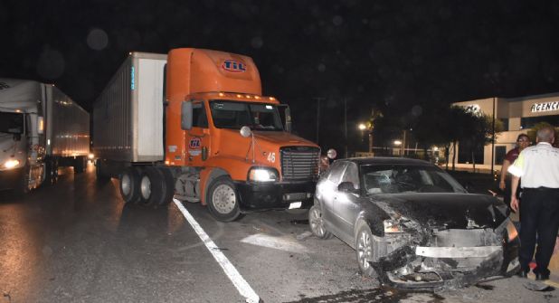 Tres vehículos, dos automóviles y un tráiler se vieron envueltos en una aparatosa colisión registrada el lunes por la noche sobre la Carretera Aeropuerto y el entronque con el Bulevar Anzures.