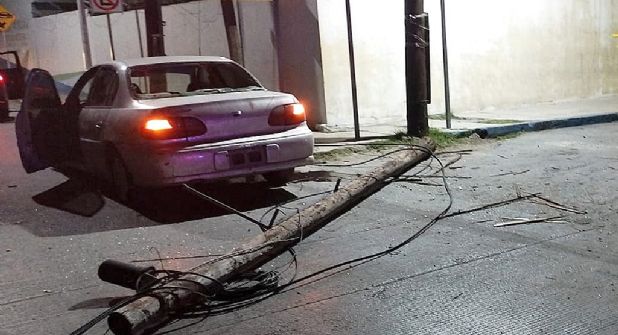 Un conductor ebrio derribó un poste de madera de telefonía, luego de que lo chocó al quedarse dormido en el volante en calles de la colonia Hipódromo.
