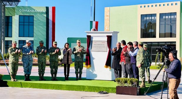Acompañado del gobernador de Tamaulipas, Américo Villarreal Anaya, develó la placa del complejo militar construido sobre el Bulevar Luis Donaldo Colosio, a un costado de donde se ubicará la Agencia Nacional de Aduanas de México.