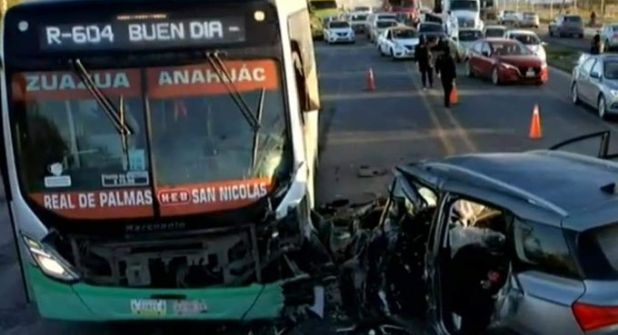 El aparatoso accidente se registró a la altura del kilómetro 26, en el municipio de Ciénega de Flores, a dos horas de la ciudad fronteriza de Nuevo Laredo.