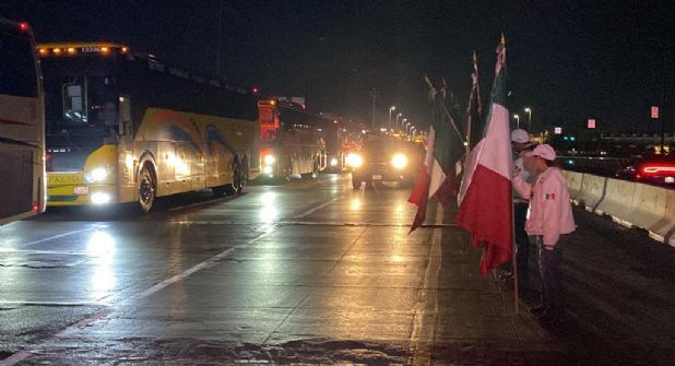 Fueron recibidos por autoridades de los tres niveles de gobierno y escoltados hasta el kilómetro 26 por la Guardia Nacional y Guardia Estatal, quienes participan en el operativo del programa Héroe Paisano invierno 2023-2024.