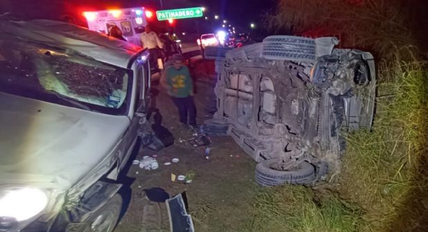 Del brutal impacto, ambas camionetas se salieron del camino y la de la mujer terminó volcada.