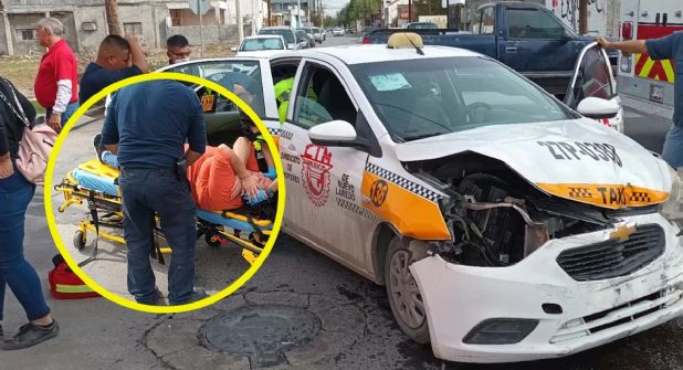 La pasajera lesionada fue identificada como Maura, de 58 años, quien era llevada a su domicilio de la colonia Jardín por el chofer del taxi Chevrolet Aveo 2019.