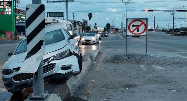 Se informó que el vehículo abandonado era un Chevrolet Malibú 2014, cuyo chofer ya no se lo pudo llevar pues quedó atascado en el muro, en el cruce con Pedro Pérez Ibarra.
