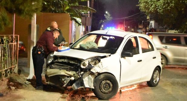 Patrulleros de la Dirección de Tránsito y Vialidad respondieron al llamado de emergencia y al llegar al crucero de Tamaulipas y Leandro Valle, solo encontraron el carro Nissan March chocado y su conductor afuera del mismo sin lesiones aparentes.
