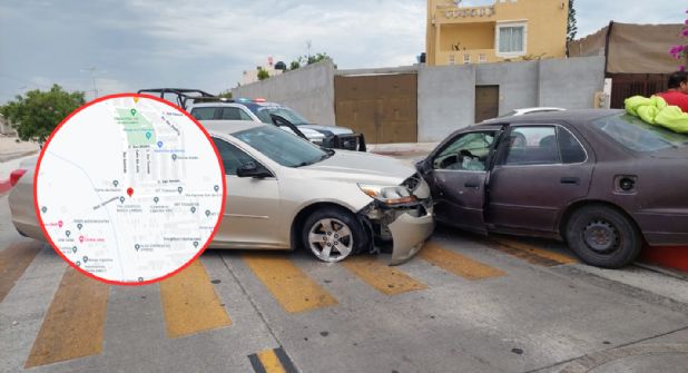 Daños materiales dejó como saldo un accidente registrado frente a la colonia Villas de San Miguel 3, provocado por el conductor de un automóvil que invadió la vía de preferencia y chocó de frente contra una camioneta.