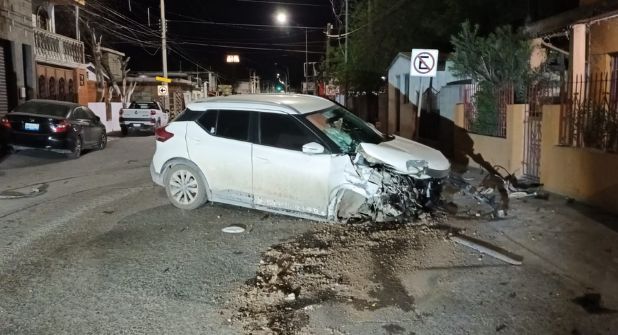 Encontronazo de grandes dimensiones se registró la madrugada de este viernes en el crucero de César López de Lara y Perú, en el que una camioneta Nissan Kicks manejada presuntamente por una mujer, intentó ganar el cambio de luz al semáforo y en el crucero se estrelló contra un endeble Pontiac de modelo antiguo, al final remató contra un medidor de gas natural y provocó fuga del combustible.
